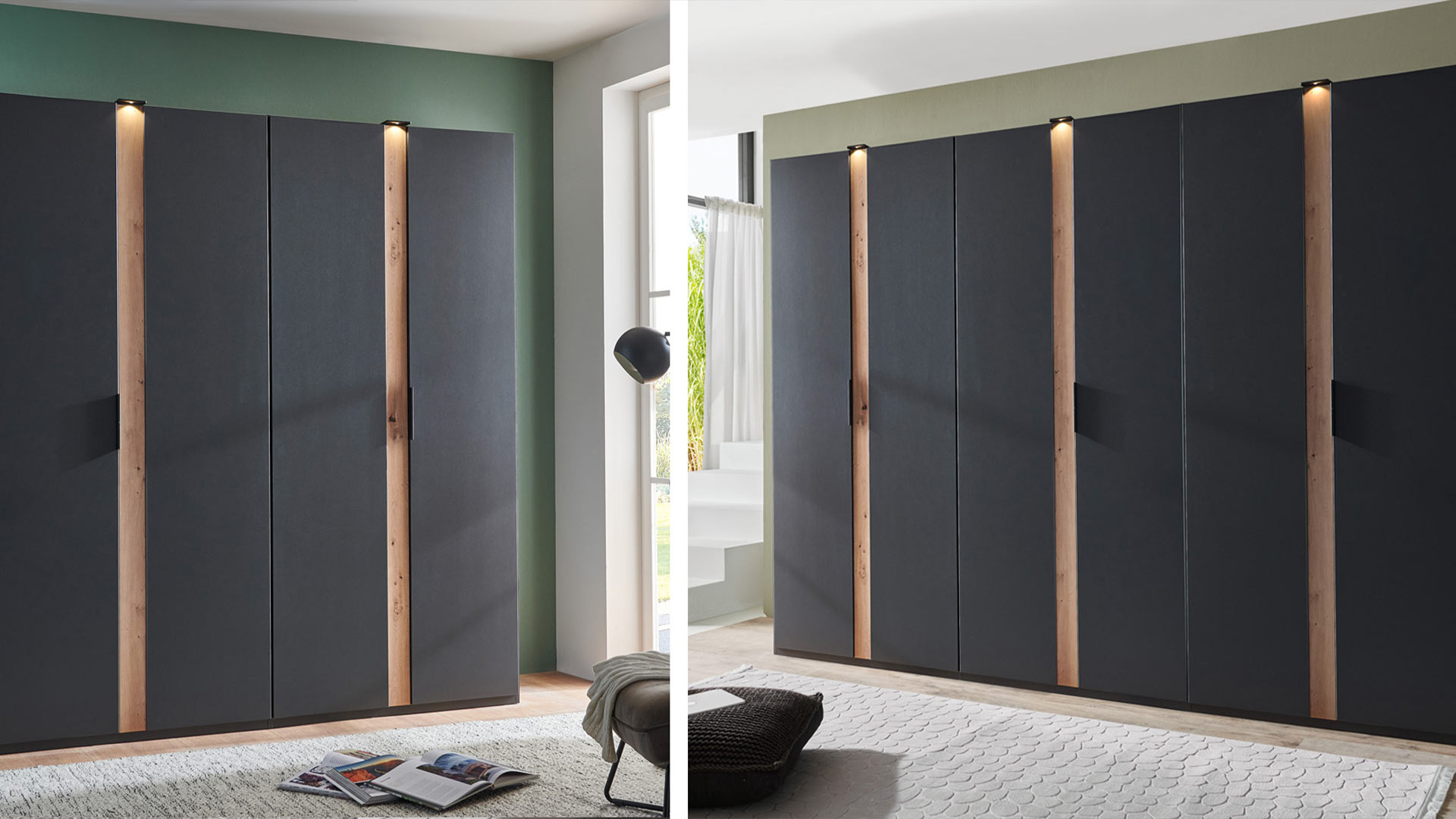 Available in two exciting colour options, RIMINI makes your home unique. Pure white with graphite accents gives your room modern elegance and cool graphite with details in Artisan oak reproduction creates a strong, striking look. With three different widths to choose from, RIMINI adapts perfectly to your available space and its chic hinged doors conceal generous storage space for your wardrobe - from elegant evening wear to casual everyday looks.