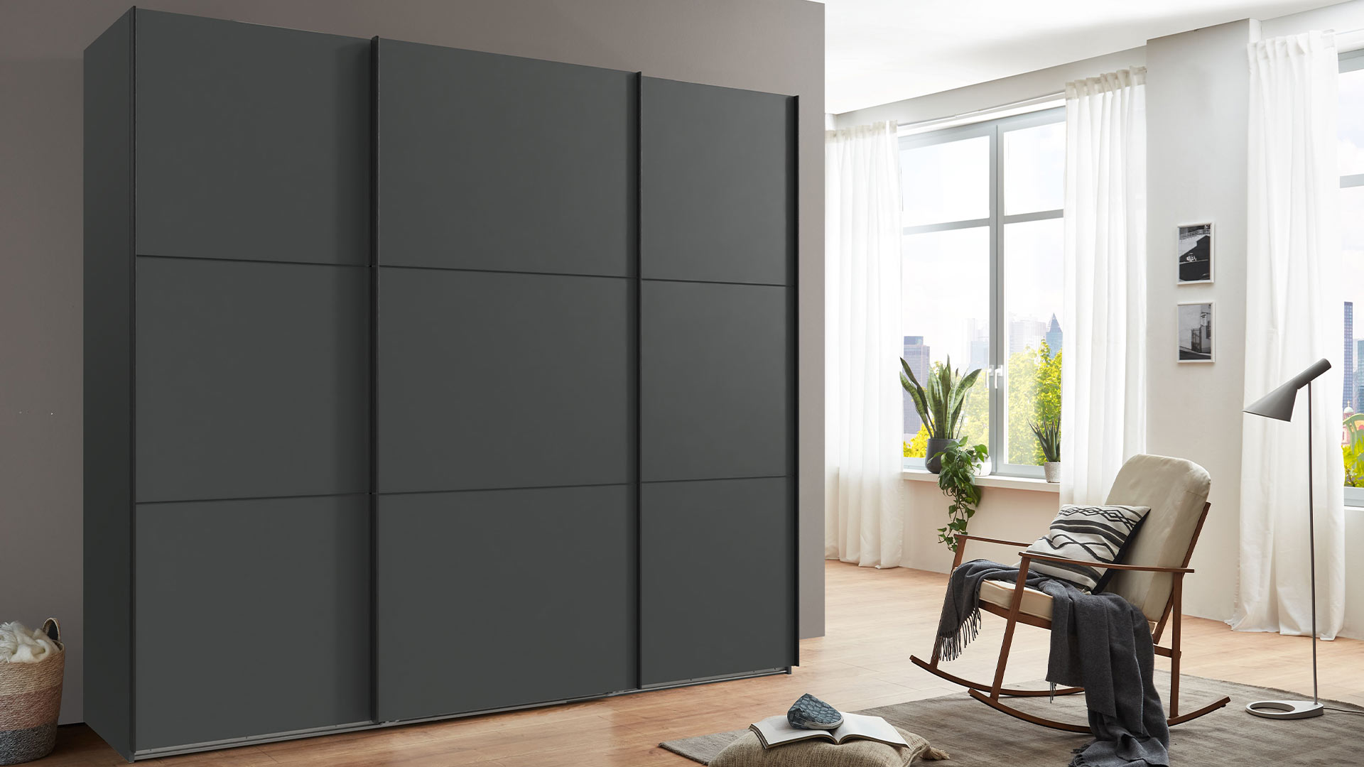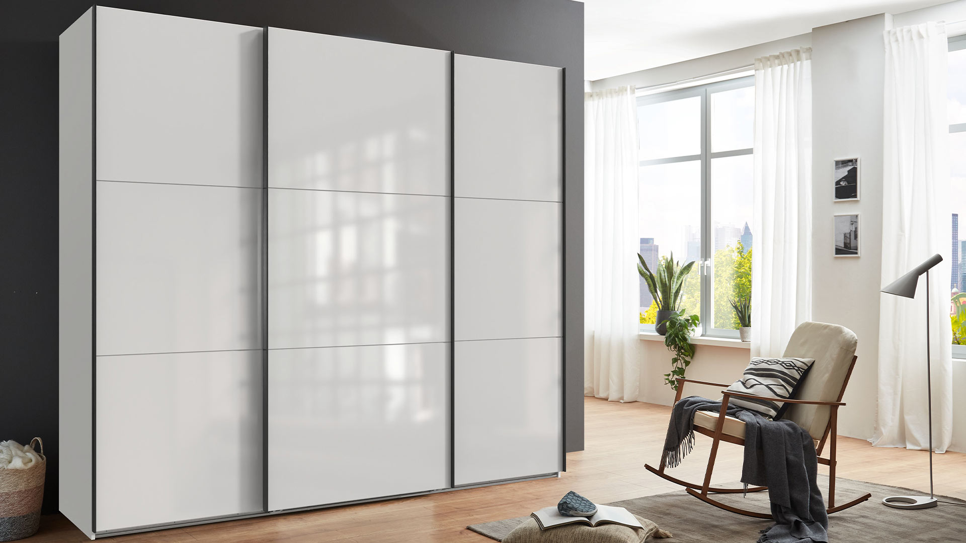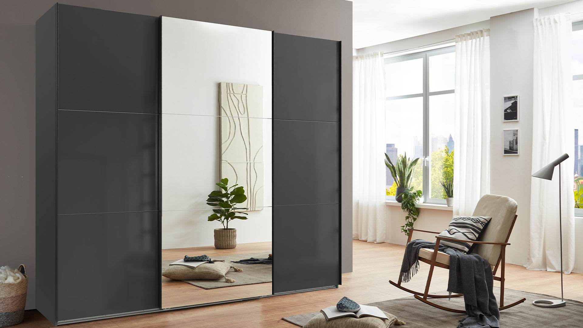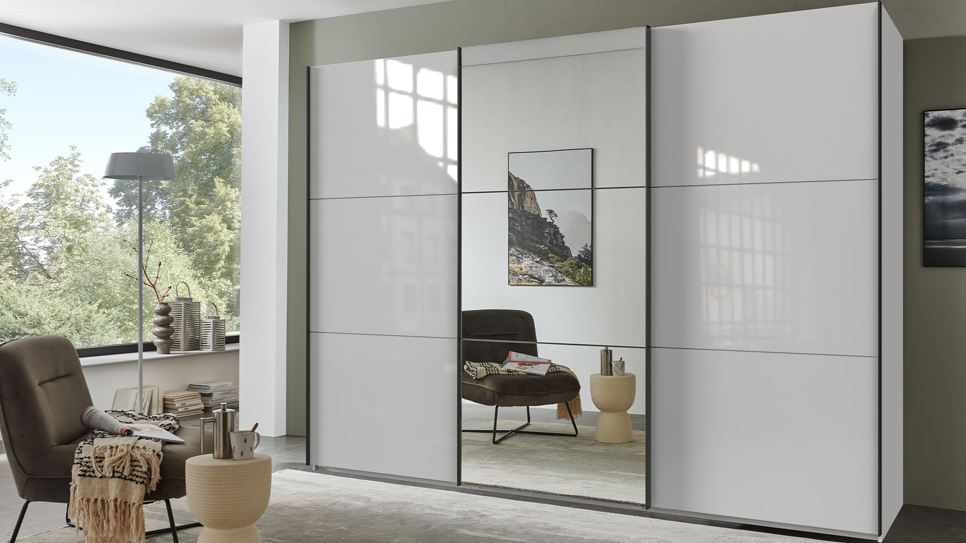 Mit 200, 250 oder 300 cm Breite schenkt dir INDIANA genau den Platz, den deine Garderobe braucht – großzügig, übersichtlich und perfekt organisiert. Komfortable Schwebetüren, uni oder mit Glas in modernen Farben, sorgen für Ruhe und Übersicht. Modelle mit Spiegeltür holen dich direkt ins Geschehen – ein kurzer Blick, ein Moment nur für dich. Schon bist du bereit für den Tag.