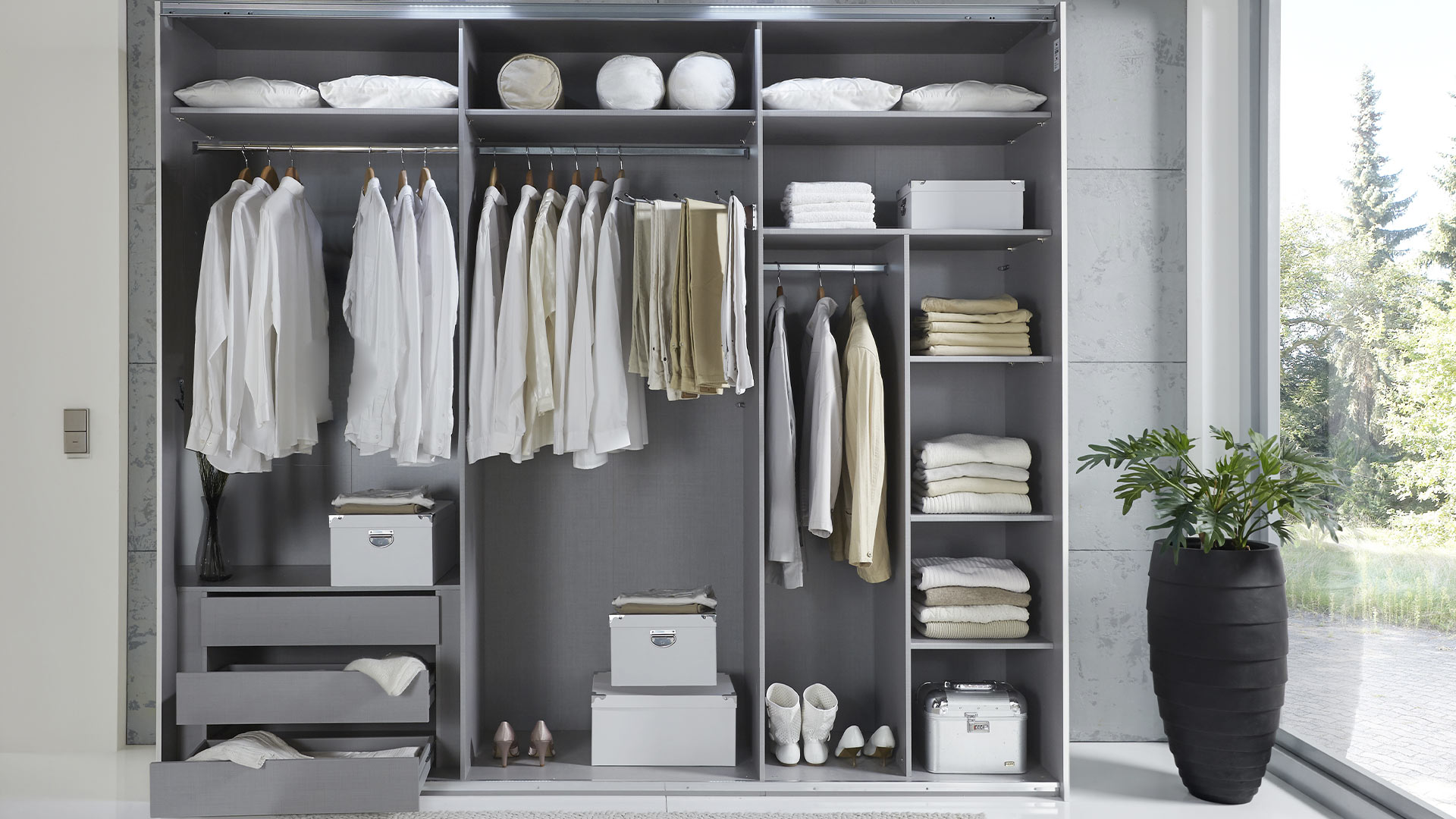 Du räumst deine Outfits ein und alles fügt sich wie von selbst: Deine besten Kombis hängen griffbereit, die feine Wäsche liegt ordentlich, Lieblings-Accessoires finden ihren Platz. Die INDIANA Komplett-Sets aus Schrank plus Innenausstattung bringen All inclusive auf den Punkt: Selbsteinzüge, Wäscheeinteilung und Schubkasteneinsatz sind mit dabei und perfekt aufeinander abgestimmt. Schrank auf – Ordnung drin.