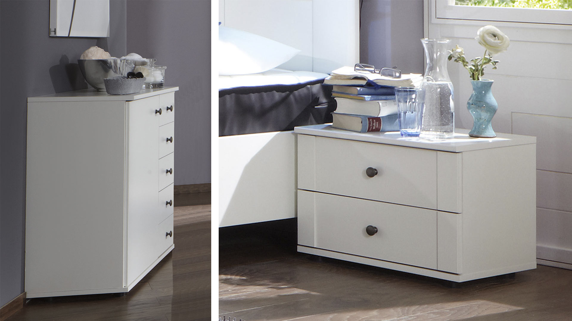 Das höhenverstellbare Kompaktbett bildet das Herzstück des Raumes: flexibel, komfortabel und darauf ausgelegt, dir neue Energie zu schenken. Hier lässt du den Tag ausklingen und startest entspannt in den Morgen. Nachtschränke zusammen mit Kombi- und Schubkastenkommoden bieten großzügigen Stauraum, ohne zu überladen. Alles ist da, wo du es brauchst, übersichtlich und jederzeit griffbereit.