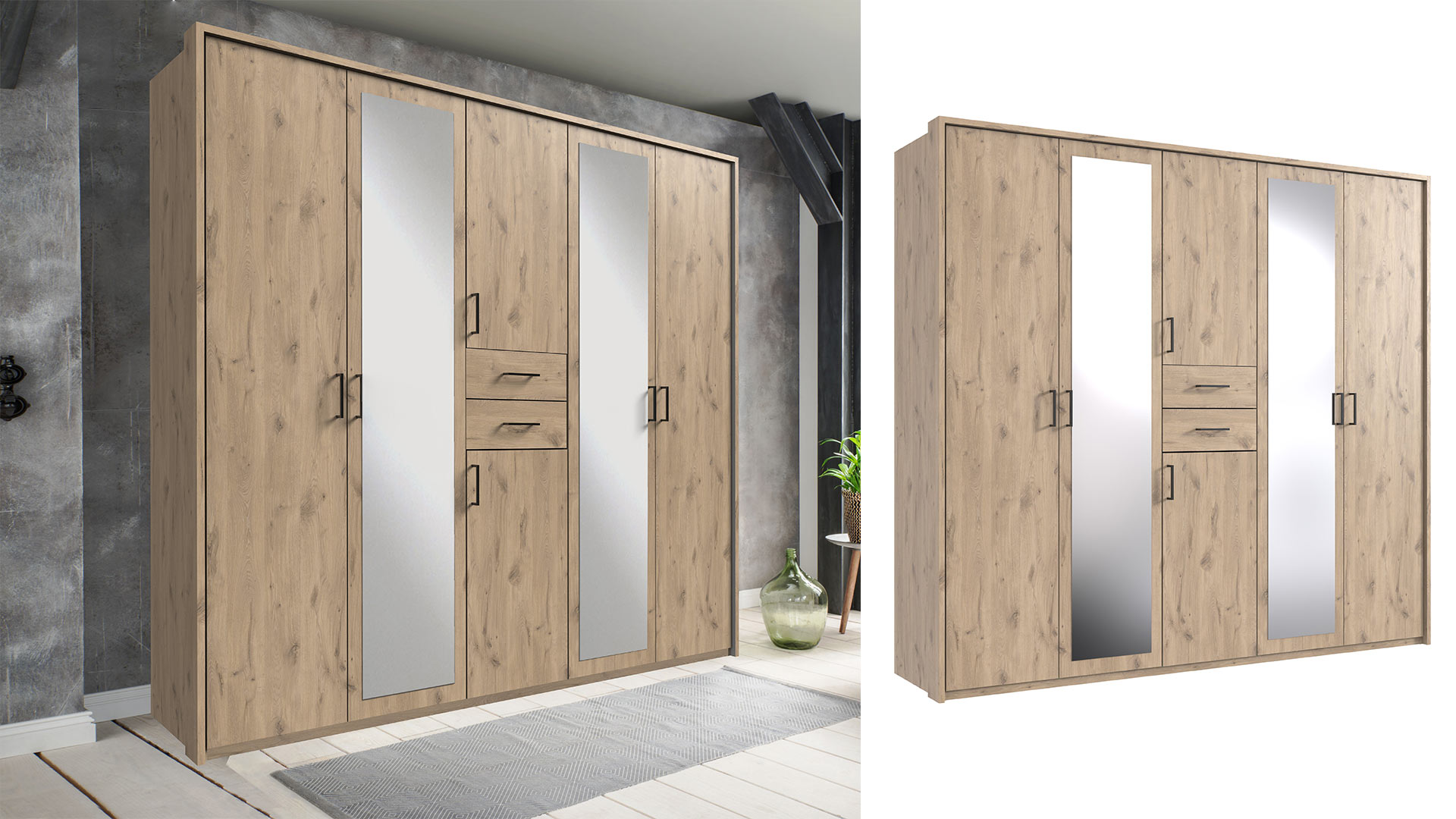 Optisch bleibt DILLINGEN bewusst schnörkellos. In Weiß oder Grafit wirkt er zurückhaltend und cool, fast schon lässig souverän. Die Viking-oak-Nachbildung bringt Charakter ins Spiel und verleiht dem Raum eine natürliche Stärke. Und wenn du ihm noch mehr Präsenz geben willst, setzt der optionale Passepartoutrahmen einen klaren Abschluss. Für Ordnung, die bleibt. Für Struktur, die trägt.